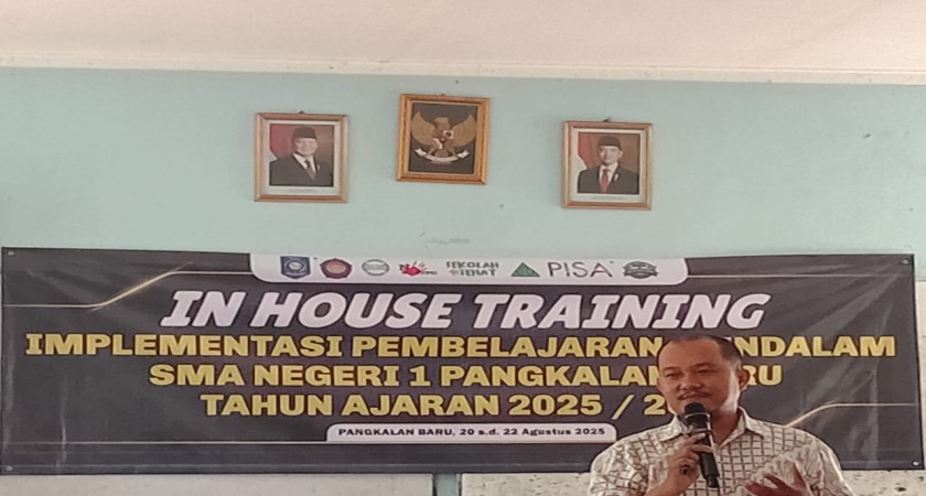 SMA Negeri 1 Pangkalan Baru melaksanakan In House Training Implementasi Pembelajaran Mendalam Tahun Ajaran 2025/2026. Kegiatan ini dilaksanakan dengan latar belakang permasalahan mutu pendidikan literasi, numerasi, keterampilan berpikir tingkat tinggi, dan ketimpangan pendidikan. Selain itu, mengapa perlu dilakukan pembelajaran mendalam untuk melengkapi pendekatan pembelajaran dengan menambah karakteristik praktik pedagogis yaitu keterlibatan, berkesadaran , memuliakan , pengembangan budaya belajar, pemanfaatan teknologi digital dan multi /interdisiplin ilmu pengetahuan. Pembelajaran Mendalam (Deep Learning) merupakan pendekatan yang memuliakan dengan menekankan pada penciptaan suasana belajar dan proses pembelajaran berkesadaran, bermakna dan menggembirakan melalui olah pikir, olah hati, olah rasa, dan olah raga secara holistik dan terpadu.